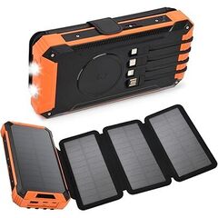 Equipped with four integrated solar panels, this solar charger offers up to four times faster solar charging efficiency compared to standard models. Its dual LED torch with three lighting modes and adjustable camping light provide reliable illumination during outdoor trips or emergencies. Built with durable, shock-resistant silicone and moisture-protected ports, it’s made to withstand rugged environments. Complete with a carabiner for easy attachment, this solar power bank is the perfect companion for camping, hiking, or travel adventures.