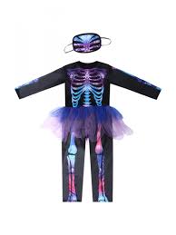Dieses liebevoll gestaltete Skelett Kostüm für Kinder wurde speziell für Halloween entworfen und kombiniert ein auffälliges Skelettmotiv mit einem farbenfrohen Design. Der schwingende Rock aus