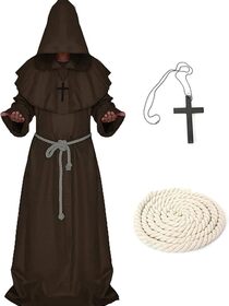Tauchen Sie mit diesem authentischen Mönchskostüm in die geheimnisvolle Welt des Mittelalters ein. Das Set besteht aus einer detailreich gearbeiteten Robe, einem Kapuzenumhang, einer klassischen